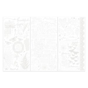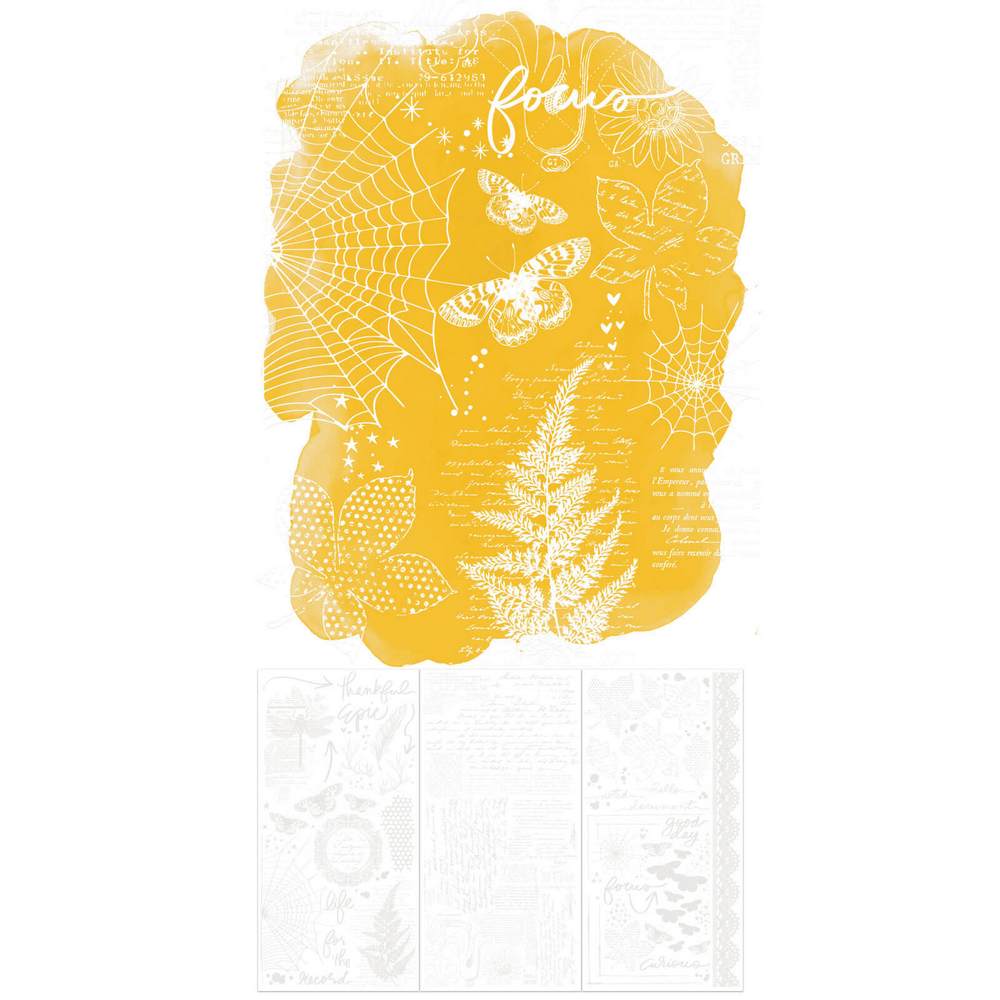 “Discover the magic of mixed media with the new Irresistible Rub-on Transfers from 49 and Market, a stunning collaboration with mixed media artist Vicki Boutin.These innovative white rub-on transfers feature new technology that creates a no-halo background, eliminating the ghostly effect often seen on dark papers. This unique feature also allows you to add ink directly over the transfers to resist the design, opening up a world of creative possibilities.The Irresistible Focus set from Vicki Boutin is perfect for adding her signature mixed media style to your projects. The set features a rich collection of designs, including word art, intricate webs, versatile text, delicate leaves, unique patterns, and much more.Whether you’re working on cards, scrapbook layouts, art journals, or other craft projects, these rub-on transfers offer a beautiful and effortless way to add detailed, layered elements with a clean, professional finish.”