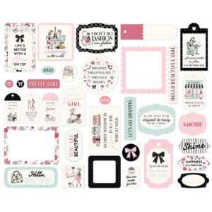 Frames and Tags Ephemera Die Cut Cardstock Pack. Pack includes 34 different die cut shapes ready to embellish any project.