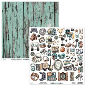 12×12″ paper set of 12 Double sided sheets (2 per design). Plus Bonus sheet of elements for fussy cutting on the back of the cover.