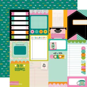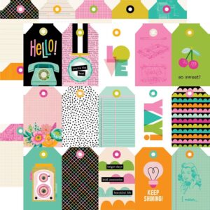 12 sheets of double-sided 12×12 Designer Cardstock including cut apart Journal, Tags and Element Sheets 12×12 Cardstock Sticker Sheet with 61 stickers;