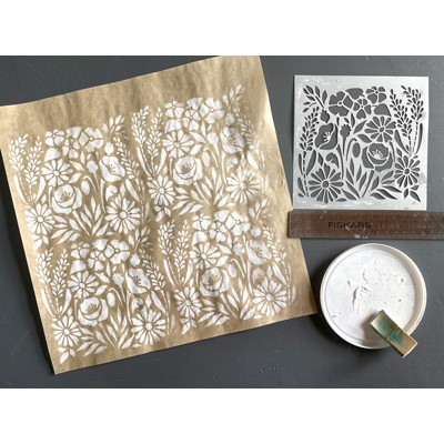 The Garden Flowers Tile Stencil by Valerie Sjodin features a garden of beautiful blossoms that can be repeated or used singularly adding floral beauty to your artwork.