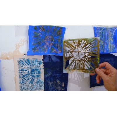 The Sunburst Crackle stencil was inspired by one of designer Daniella Woolf’s art installations called “Yours, Mine, and Ours.” The stencil portrays the view looking up from the ground floor toward the skylight of the museum. The combination of the clock image layered with a subtle grid and a fractured sunburst will help bring great visual interest to your art journaling and mixed media work. Also perfect for paper crafting and home decor, this stencil is suitable for use with all mediums.