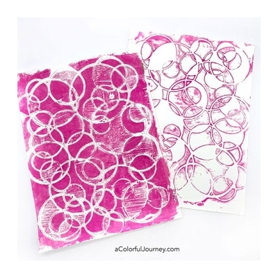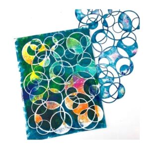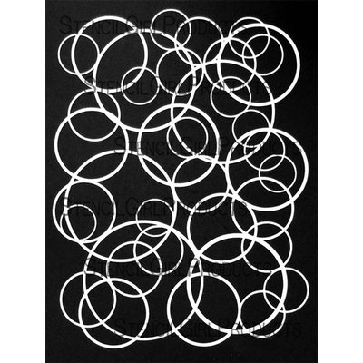 The Circles Overlapping stencil by Carolyn Dube was inspired by the idea that everything is connected. As the name implies, the stencil (actually a mask,) is made up of lots of overlapping circles in various sizes. This design is great for making doodles inside the lines, for printing on your gelatin plate, painting then cutting out patterned parts for strategic placement in your art journal, and also fabulous for layering with Pan Pastels. This thicker mylar stencil (10mm instead of the usual 7mm,) also makes this design ideal for use with texture mediums like molding paste or for encaustic painting.