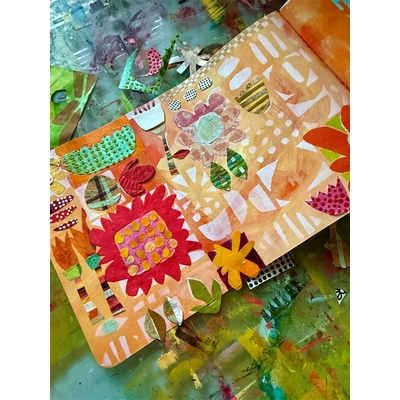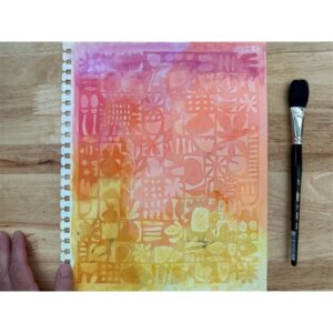 Susan Rossiter’s Doodle stencil can be used so many ways! Cold Press or Absorbent Ground can be pushed through over an alcohol ink background and then use watercolor to enhance the ground. A resist technique using washes of transparent colors over Zinc White stenciling is fun and then you can add detail or outline the botanical shapes with pencils, paint or markers. This is a great prep-ahead process you can take on the go for hours of doodle fun on vacation or in a coffee shop with a friend.