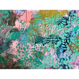 The Floral Frolics Pattern stencil by Wendy Brightbill is an abstract pattern of playful flowers and messy marks.