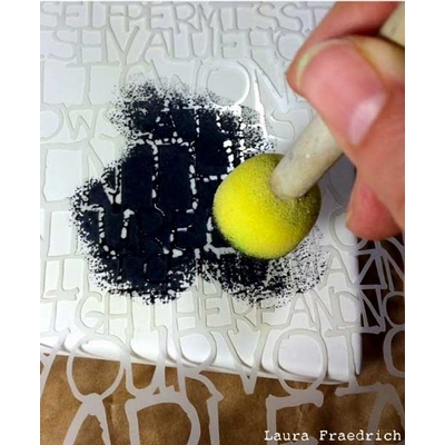 Words to Live By was designed by Carolyn Dube. These affirming and encouraging handwritten words can be used with paints, inks, molding pastes, watercolors, fibers, and more! Use the entire stencil or pick and choose just some of the words. The choice is yours! Take a look at the photos above to see this stencil used a pattern, as focal words and as a background.